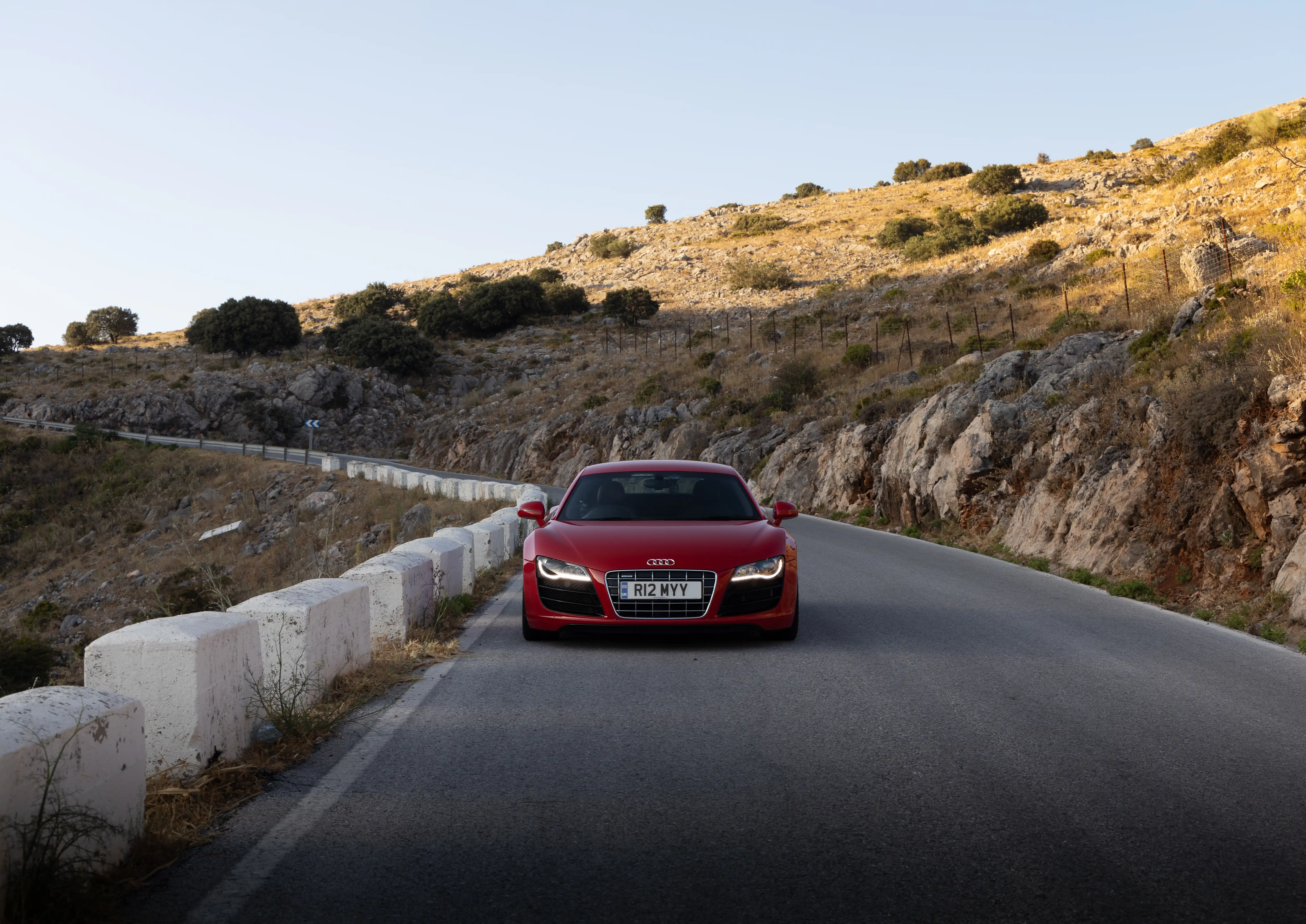 Sharp exterior angles, cockpit details, and low-slung evening frames built around the R8's shape.